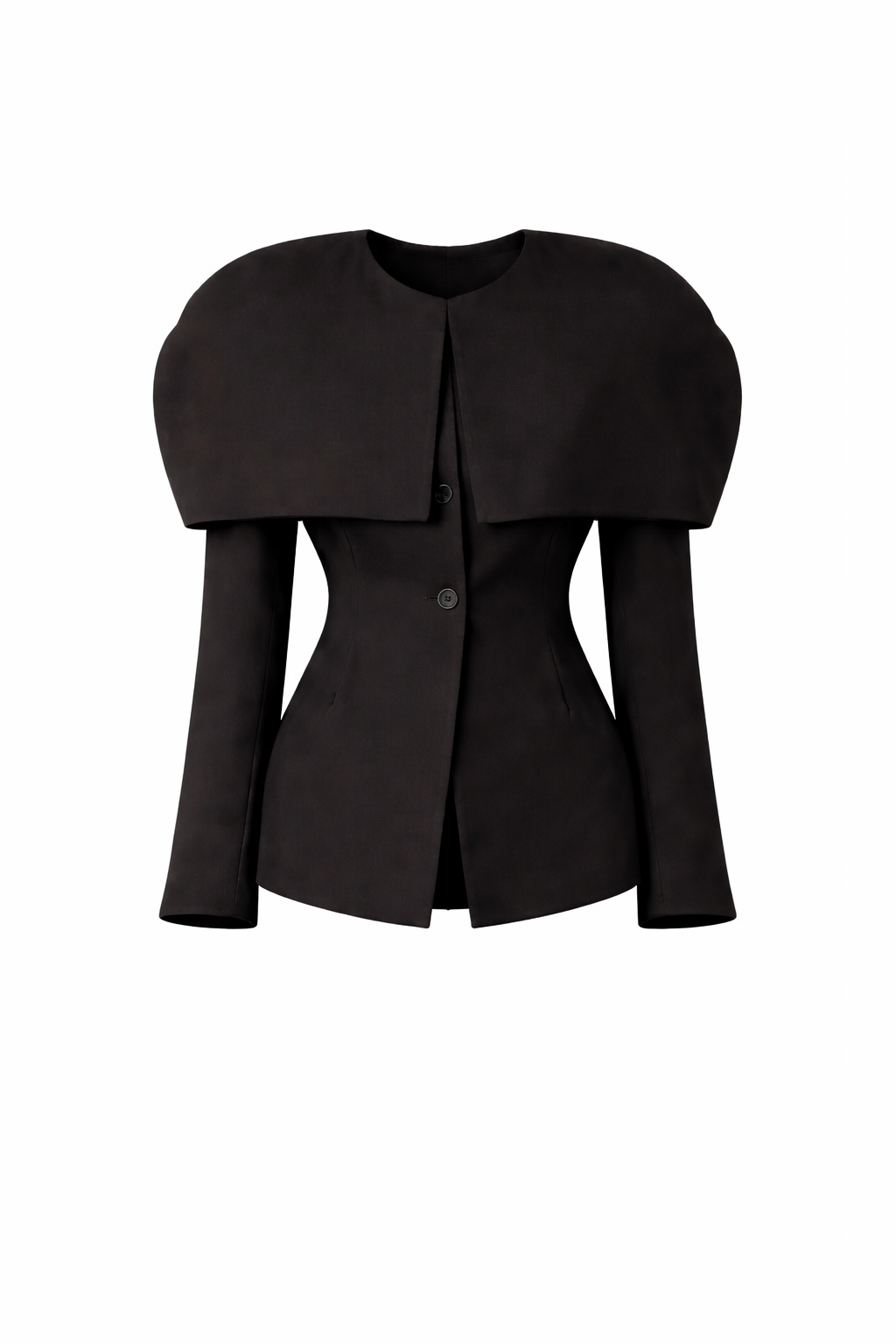 Black short cape in double layer pure wool fabric, can be worn with our Black wool jacket or on top of any other outfit of your choice.
