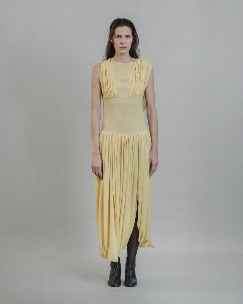 Linen wool pleat dress